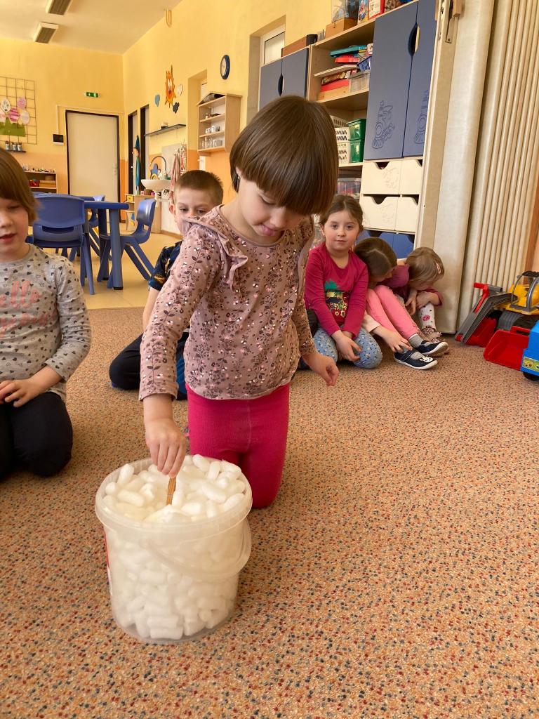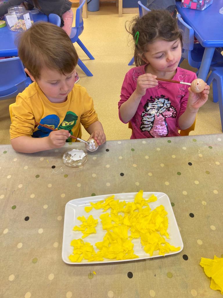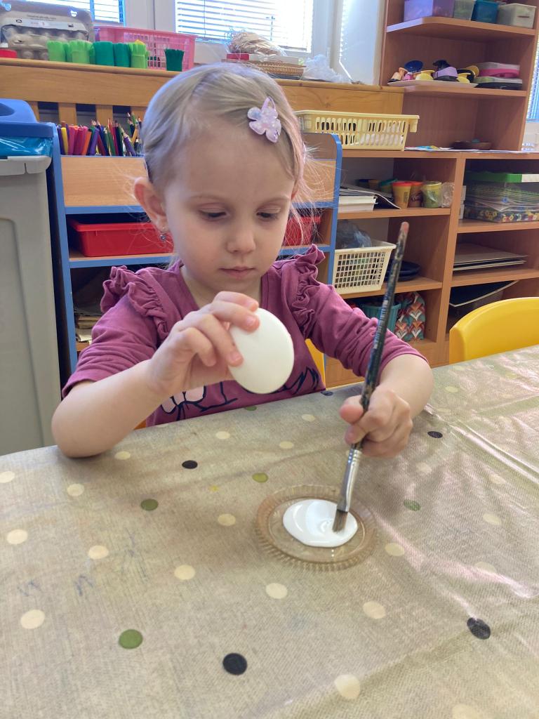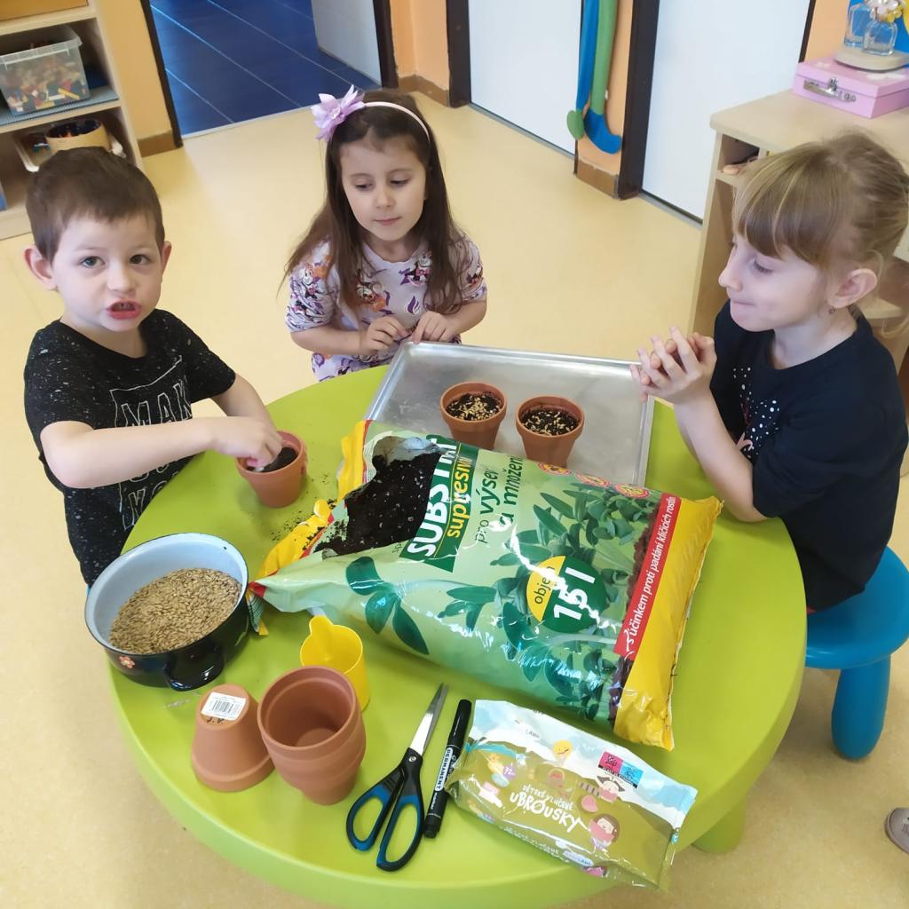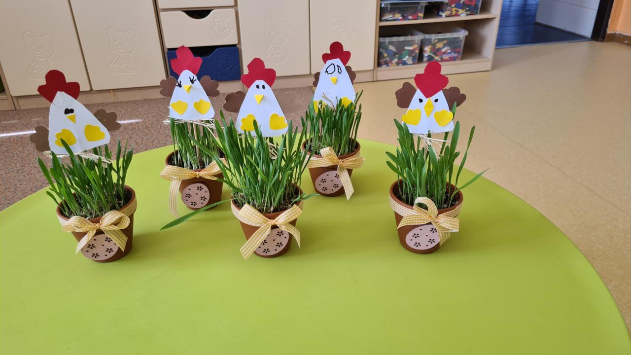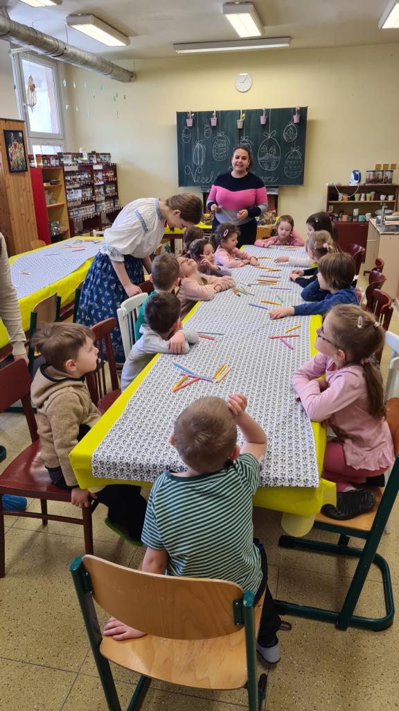 Naše velikonoční přípravy již započaly sázením osení a pohádkou O zlatém vejci. Poté jsme se vydali do Alceda, kde se děti seznámily s velikonočními tradicemi a vytvořily si několik výrobků. V posledním týdnu jsme si vysvětlovali názvy jednotlivých dní za pomocí příběhů, říkanek, písní a her.