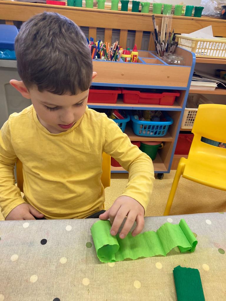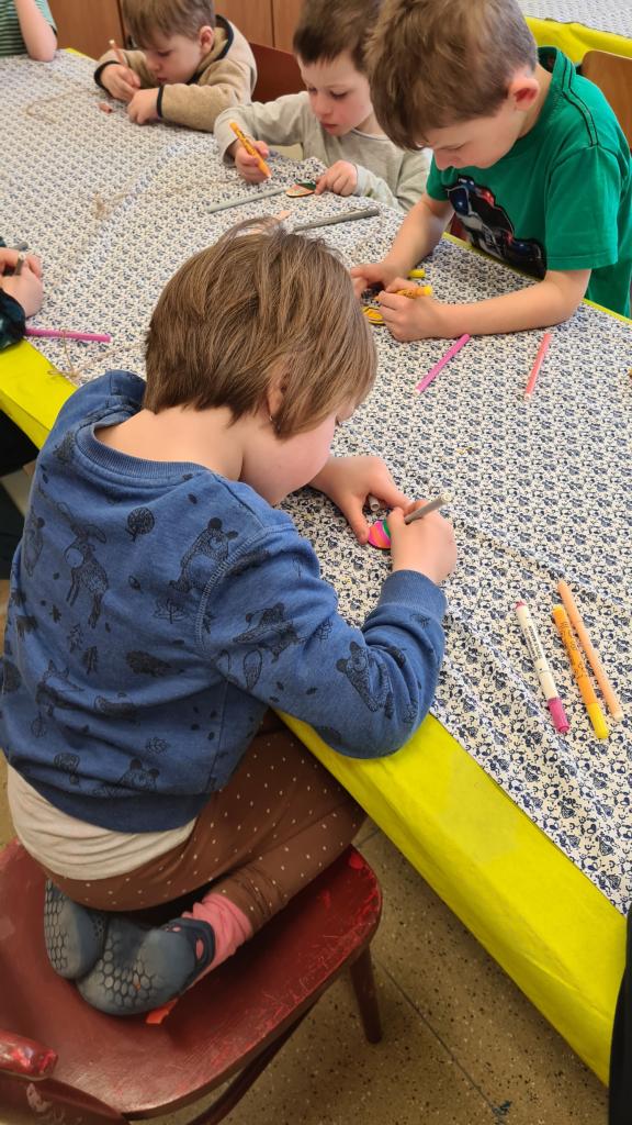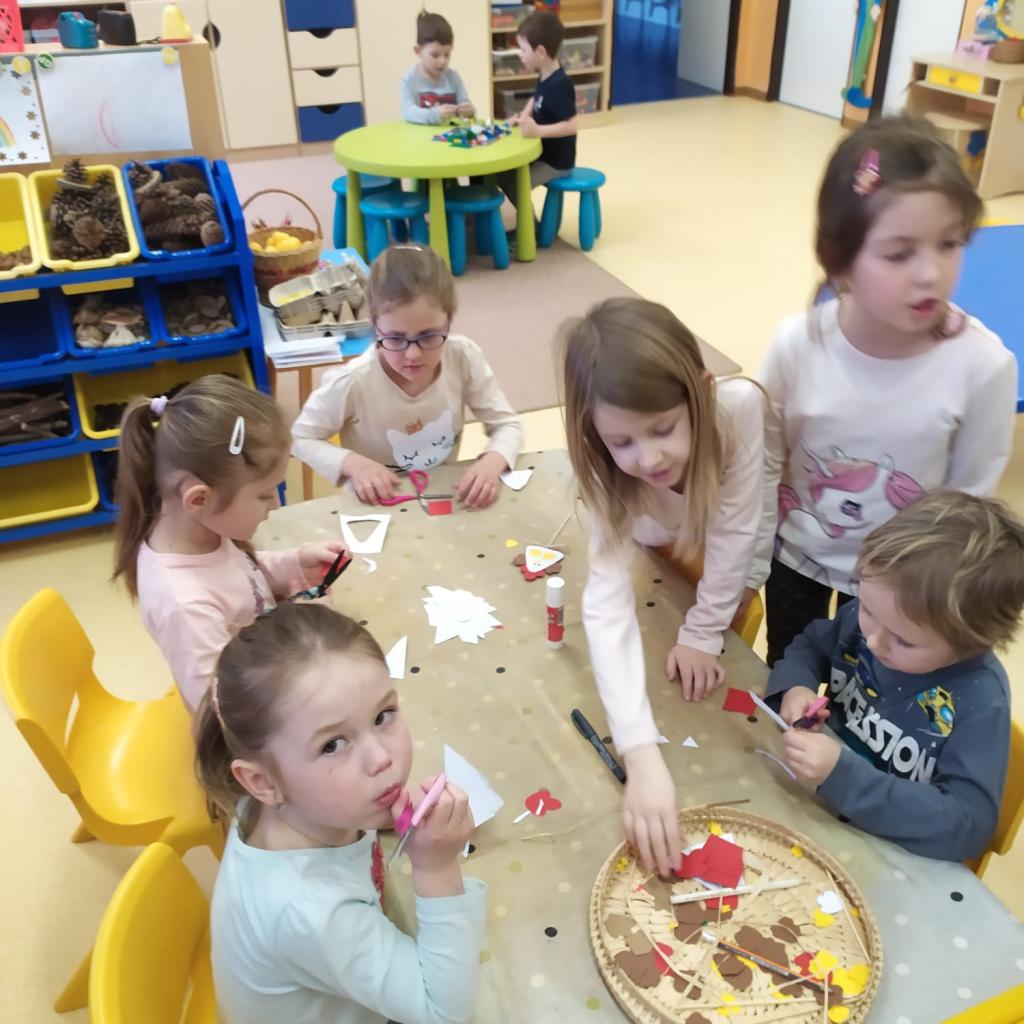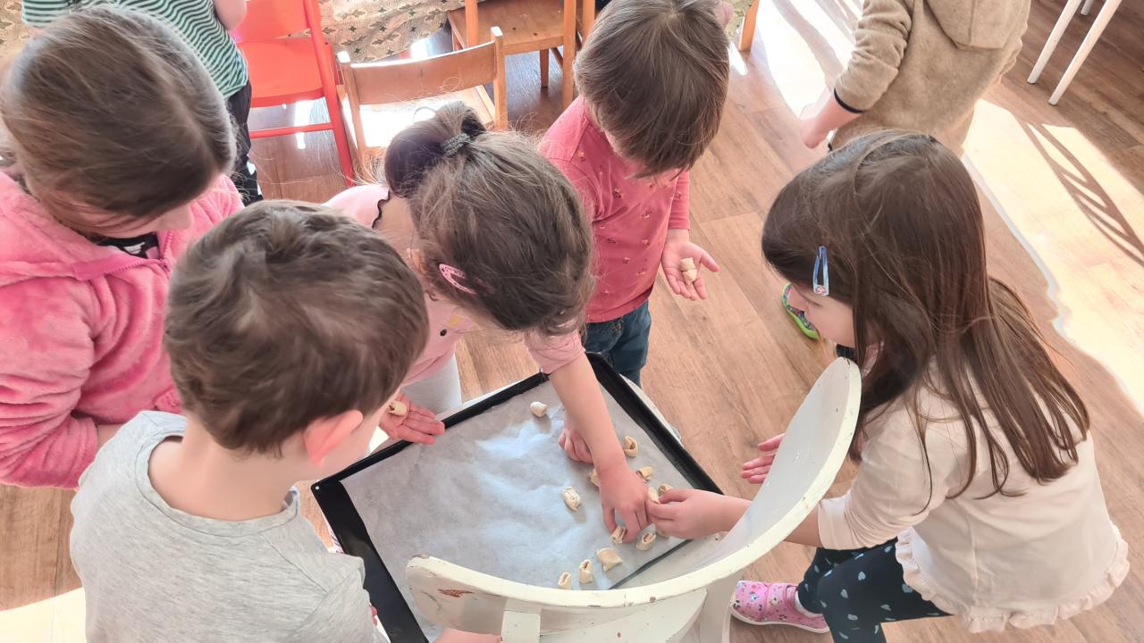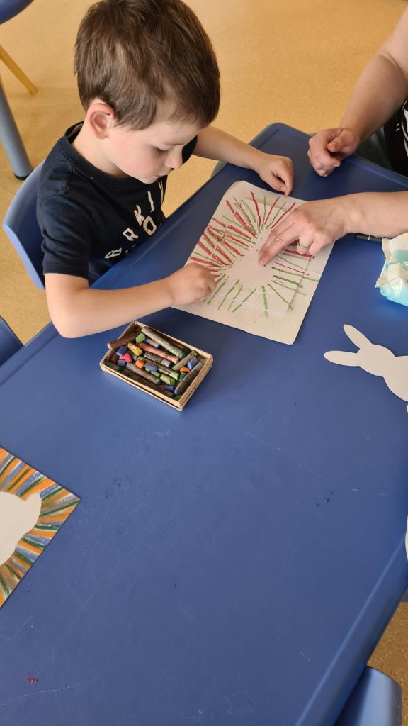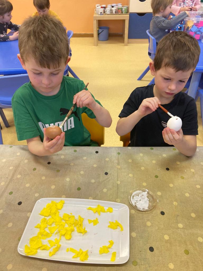 Naše velikonoční přípravy již započaly sázením osení a pohádkou O zlatém vejci. Poté jsme se vydali do Alceda, kde se děti seznámily s velikonočními tradicemi a vytvořily si několik výrobků. V posledním týdnu jsme si vysvětlovali názvy jednotlivých dní za pomocí příběhů, říkanek, písní a her.