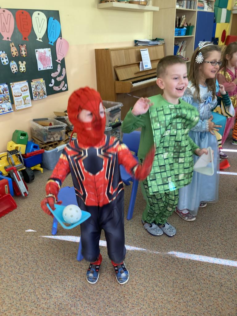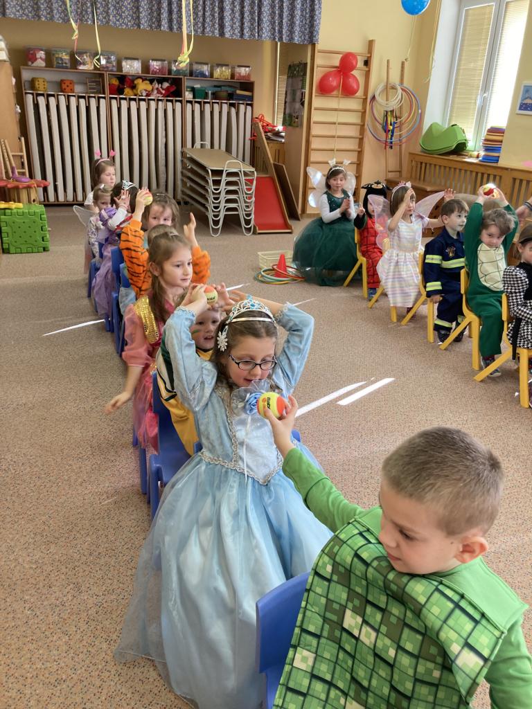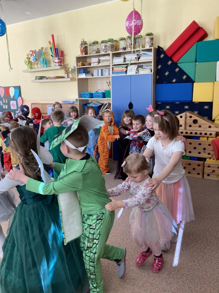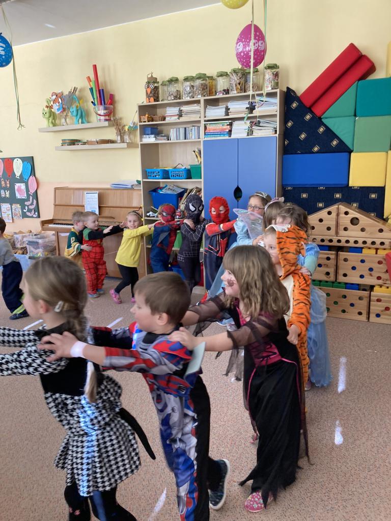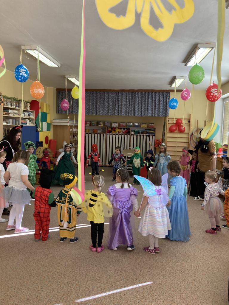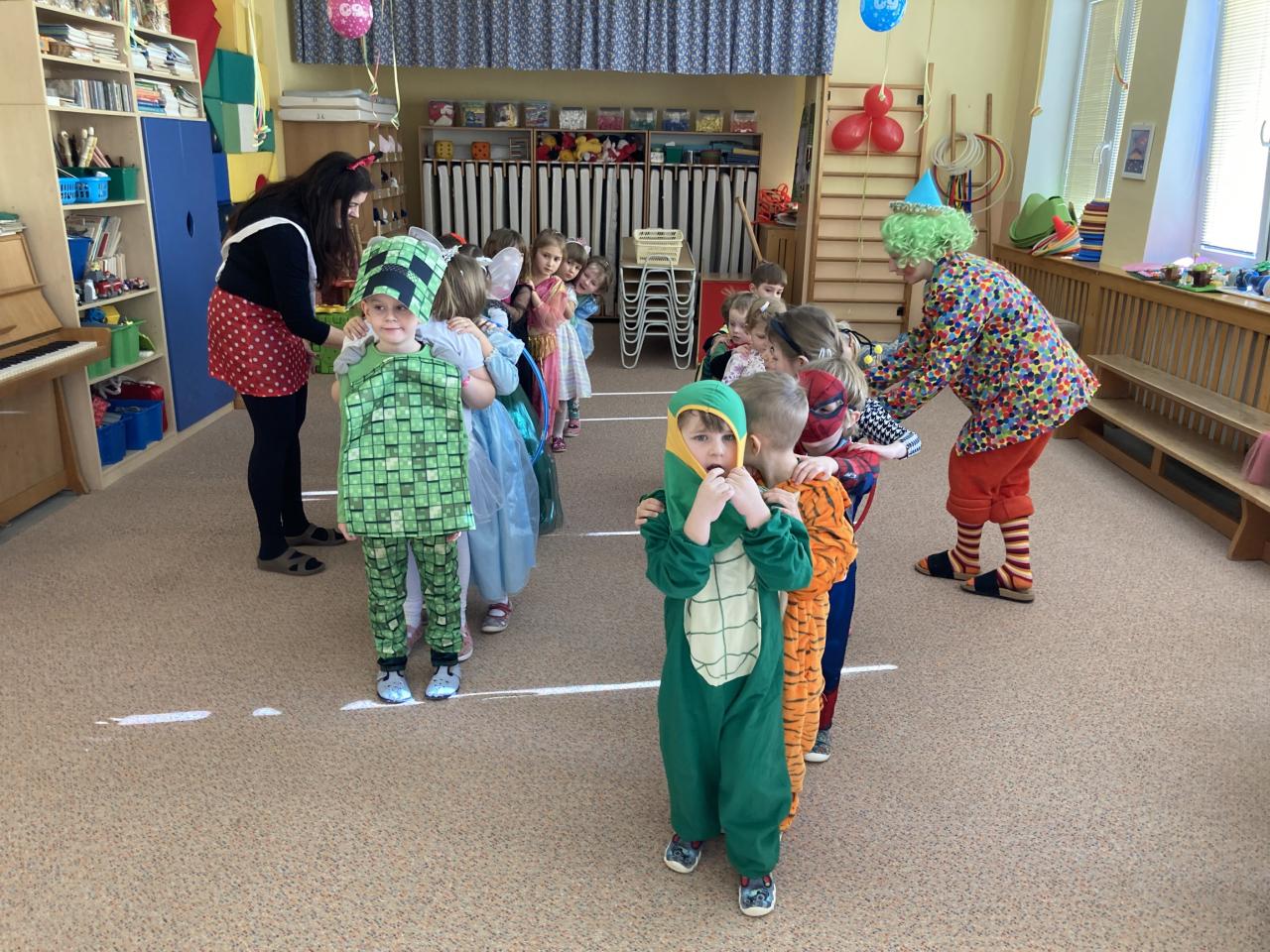 Naše přípravy na karneval započaly již o týden dříve a to výzdobou. Následující týden jsme vedli rozhovory na téma: masopust, průvody, zabíjačky, pohádkové postavy a také zpívali tematické písně. Nejvíce jsme si užili karneval s bohatým programem a získané dojmy a zážitky jsme poté ztvárnili.