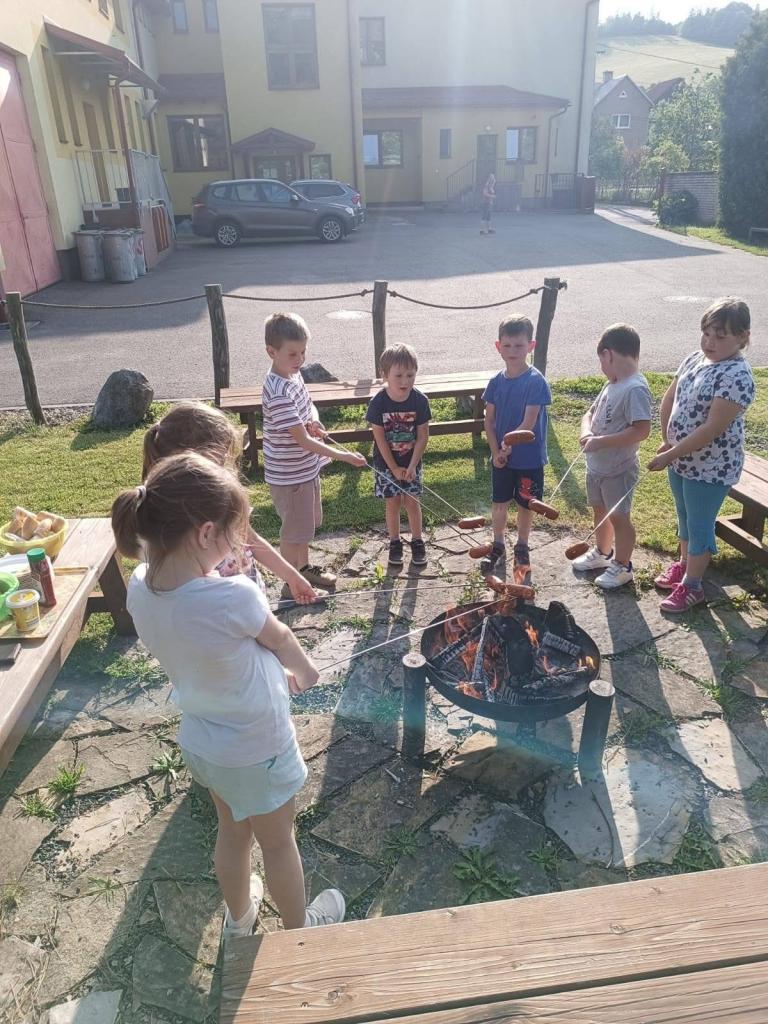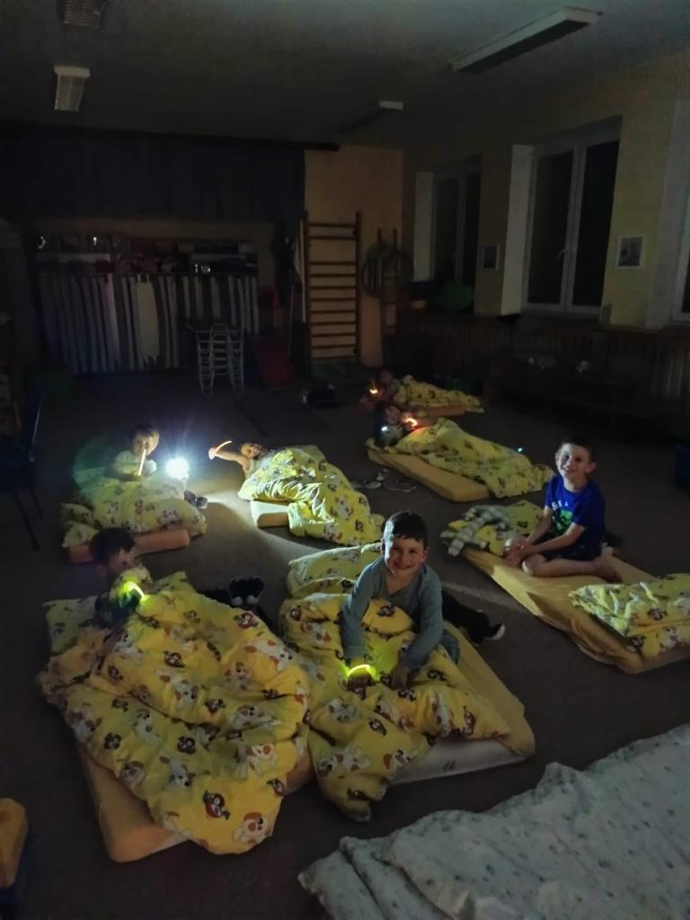 I letos si zkusily naše nejstarší děti zůstat v MŠ přes noc. Připravený program byl bohatý a děti byly plné očekávání. Čekala je návštěva džungle ve Vsetíně, opékání špekáčků, vlastní dobroty, hry, pobyt na hřišti, v pozdějších hodinách také průzkum celé školy, kresba se světýlky ve tmě a pohádky.