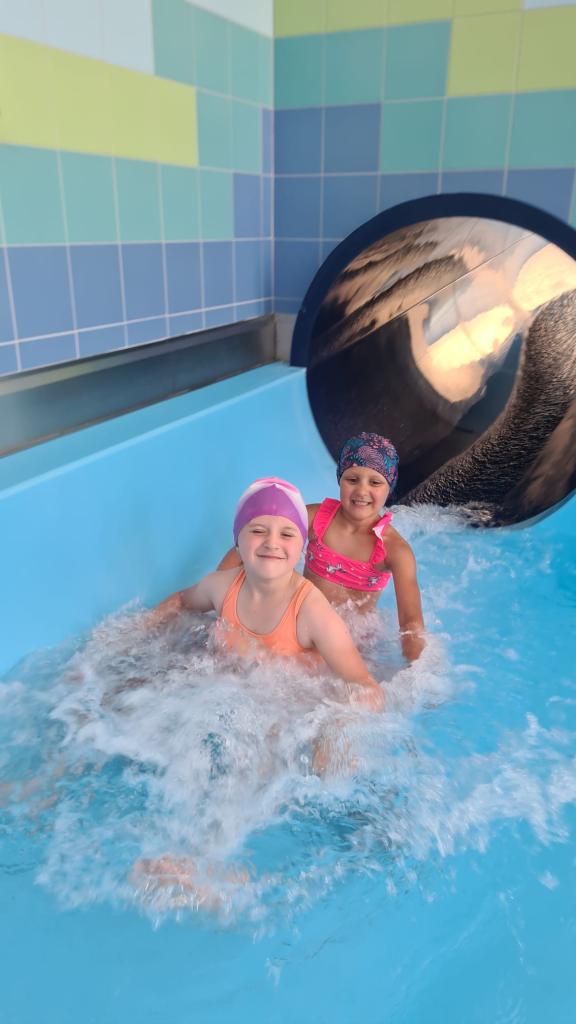 Na poslední plavání se naši předškoláci velmi těšili. Paní instruktorka připomněla dětem naučené dovednosti, které si ještě vyzkoušely a poté následovaly jízdy na tobogánu za odměnu. Blížil se závěr, a tak došlo k velikému loučení a rozdávání mokrého vysvědčení.