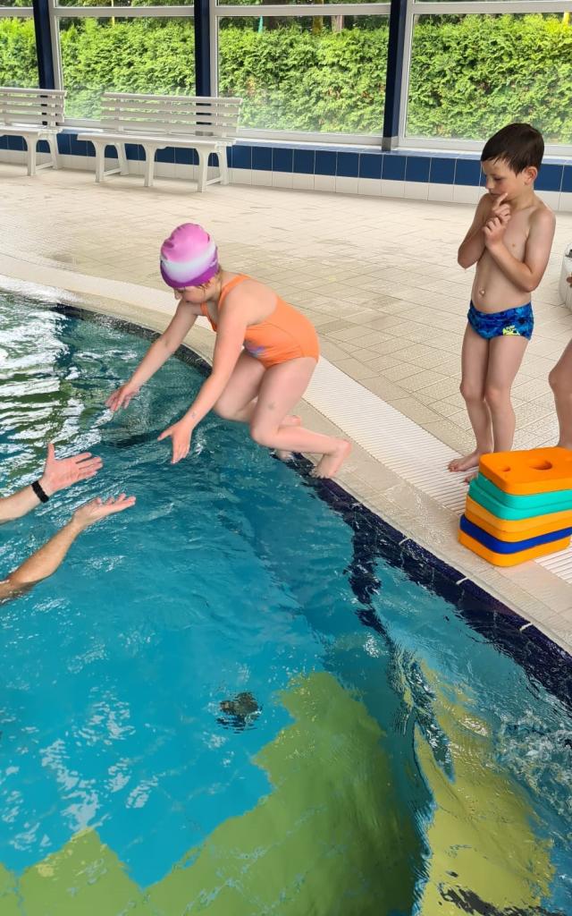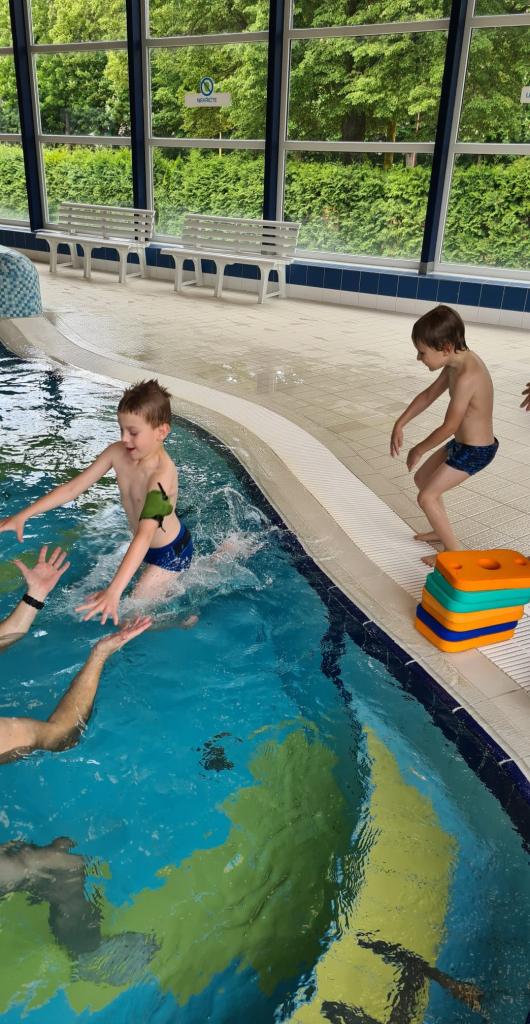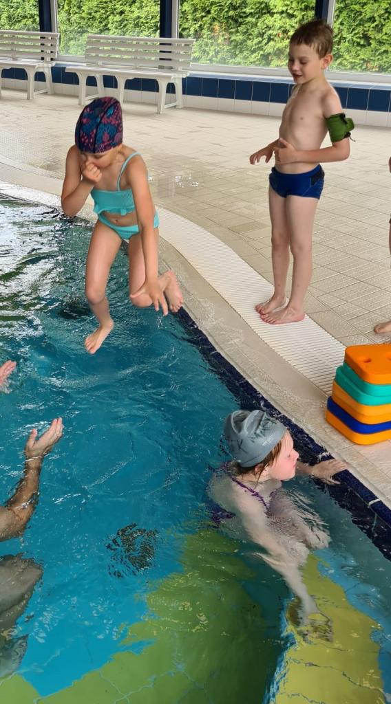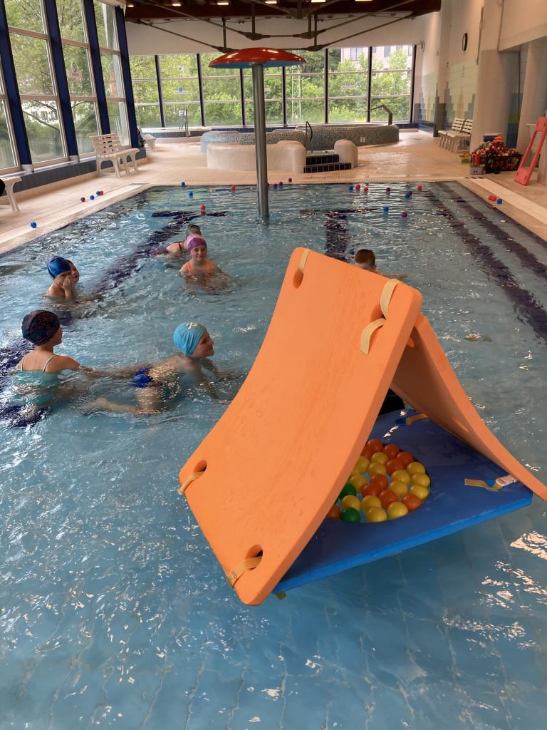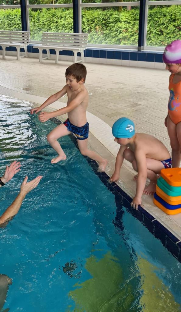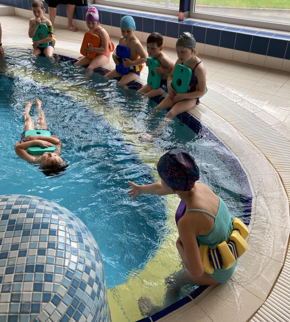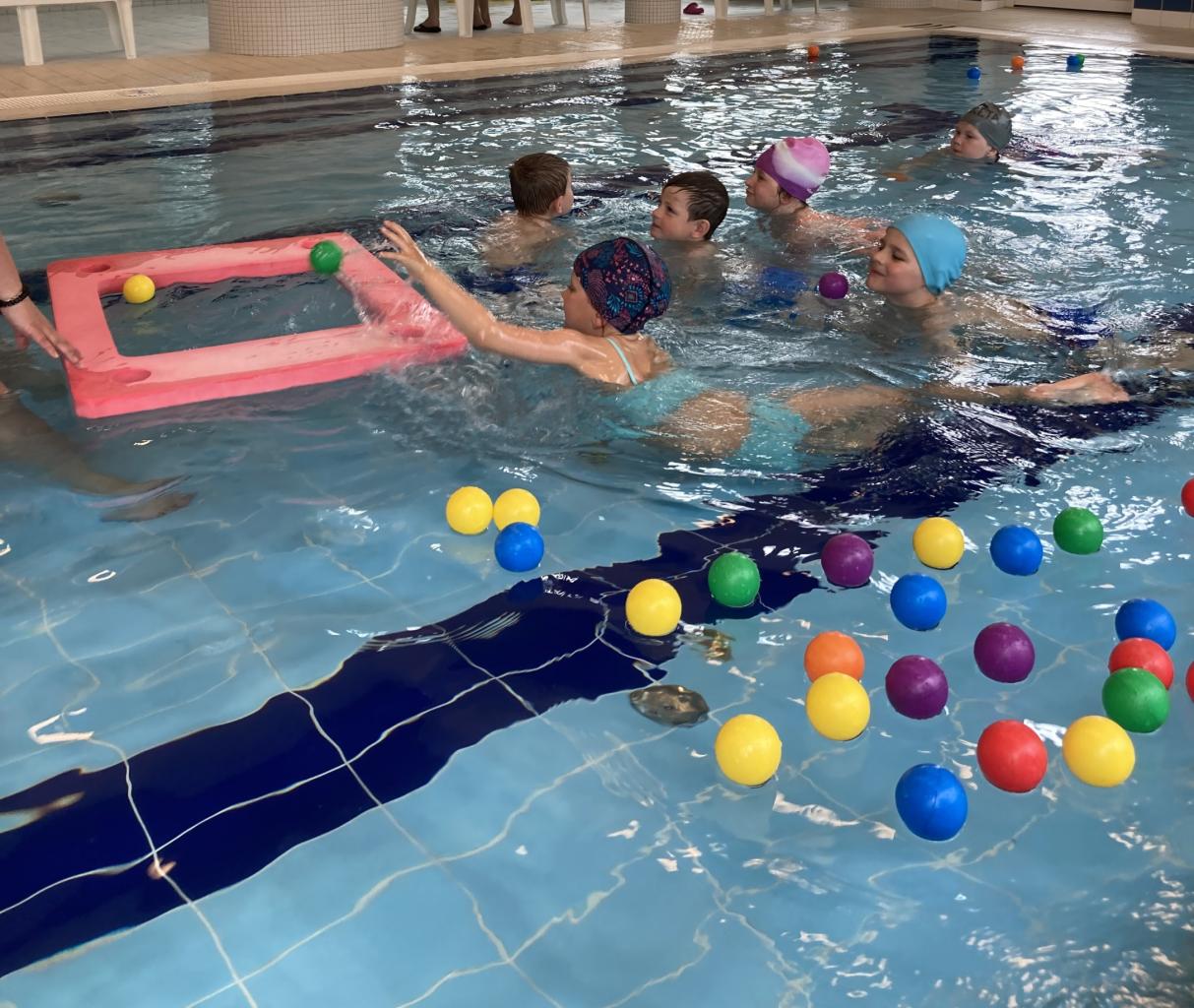 Ihned na začátku plavání se děti seznámily s pravidly hygieny a bezpečností kolem bazénů a v šatně. Zahájení plavání se velmi zdařilo, nikdo se nezalekl vody, a tak se všechny děti zapojily do pestrých aktivit: lovení míčků, schovávání se pod domečkem, hledání zvířátek, bublání do vody a splývání.
