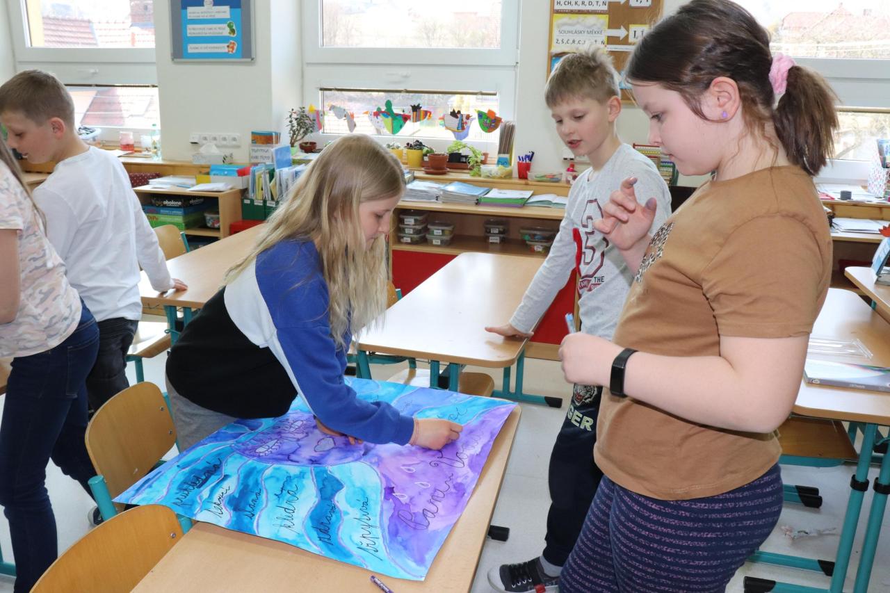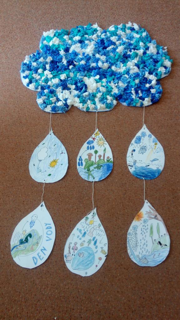 V úterý 22. 3. jsme si v naší škole připomněli Den vody. Prvňáčci nakreslili do jedné kapky vody koloběh vody v přírodě. Druháci a třeťáci malovali ve výtvarné výchově Paní vodu a v českém jazyce sepisovali přídavná jména - jaká je Paní voda a slovesa - co všechno dělá Paní voda.
