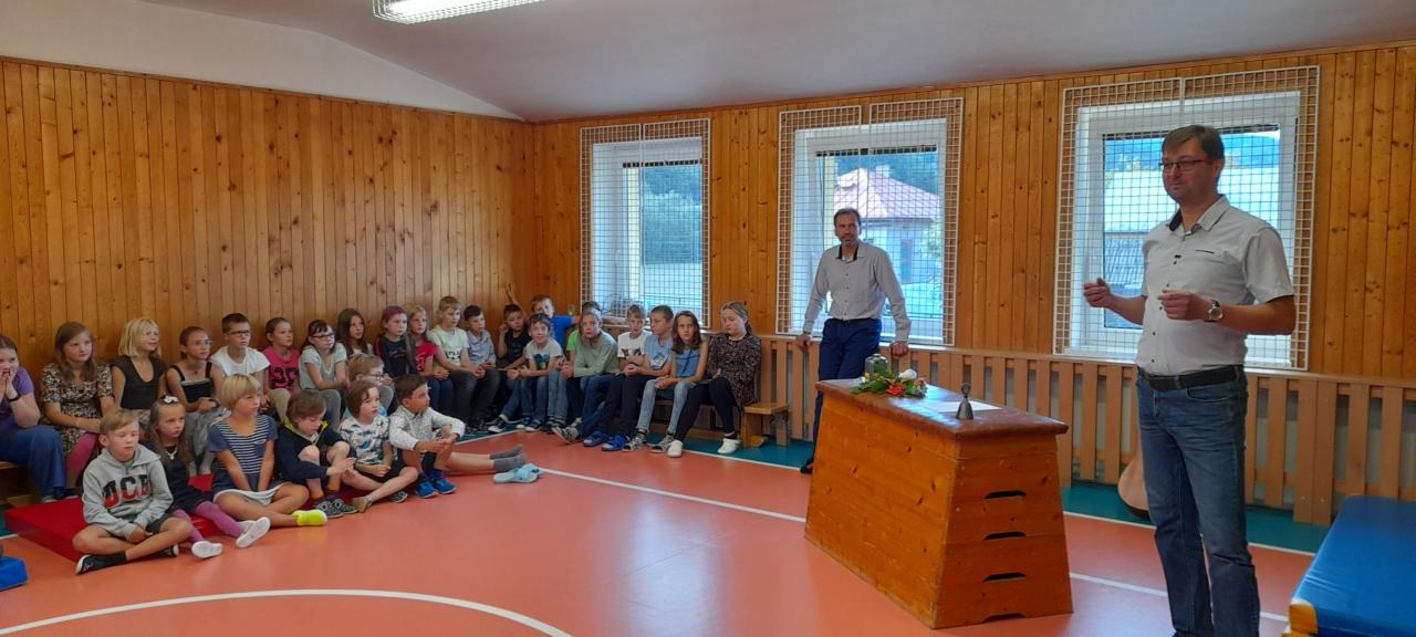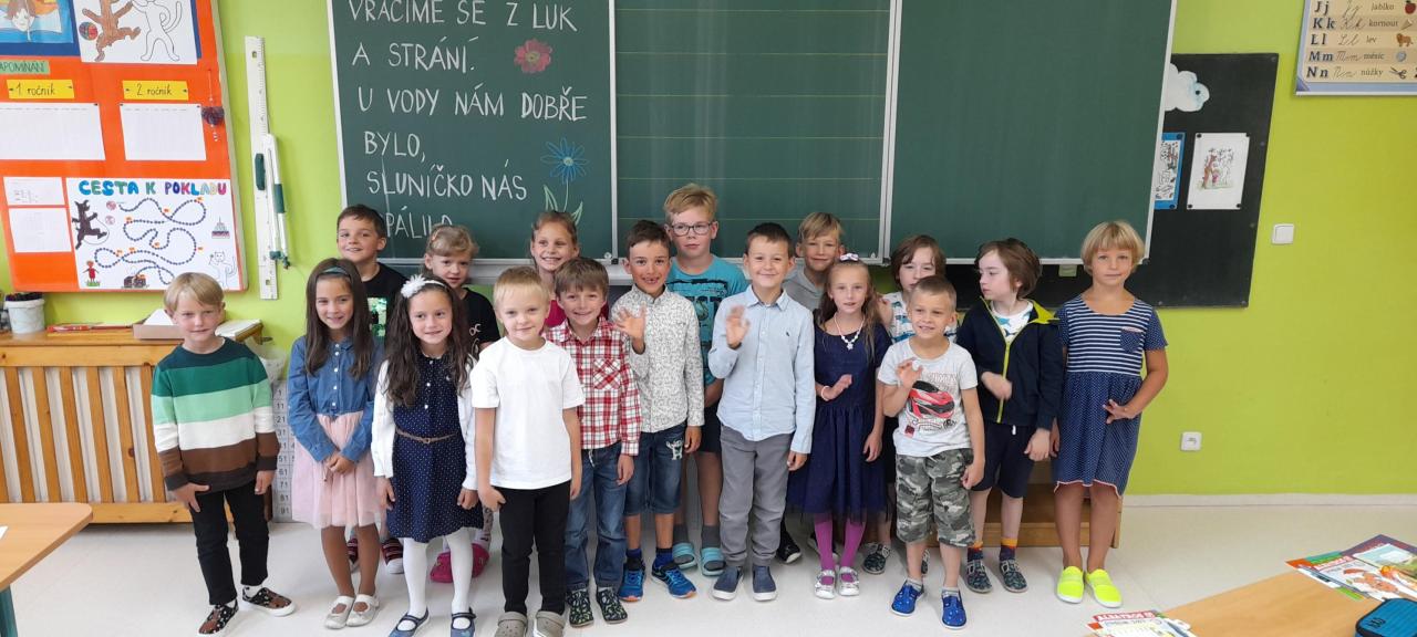 Po prázdninách škola ožila - letos nás přibylo - do školy k nám chodí 52 žáků. Přivítání proběhlo jako každý rok společně v tělocvičně a potom samostatně ve třídách. Do první třídy letos nastoupilo 10 žáků.