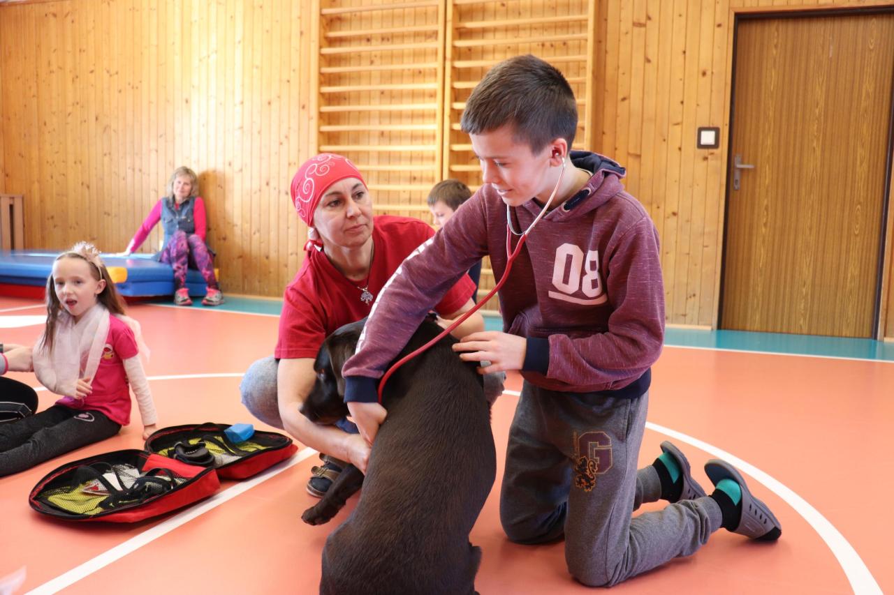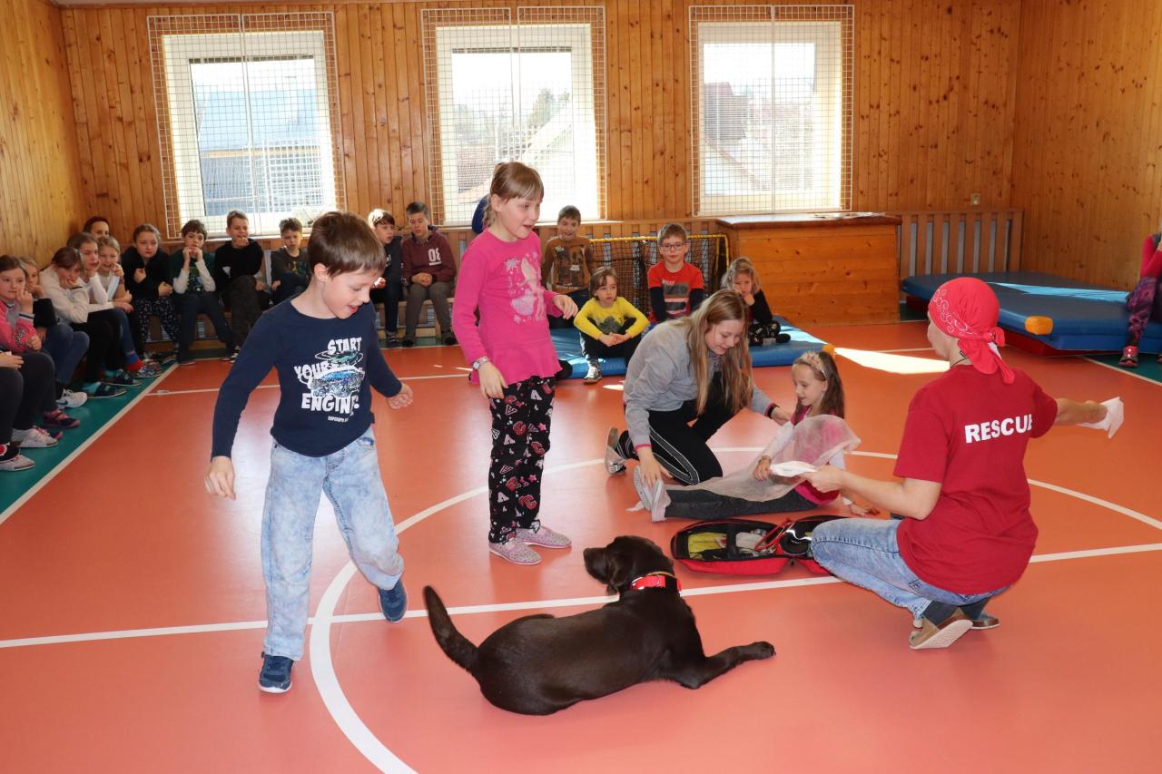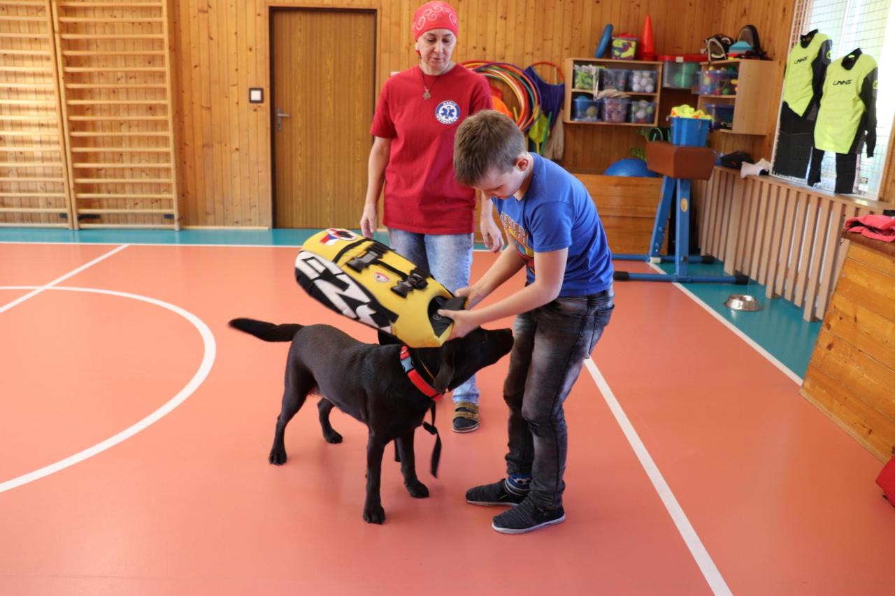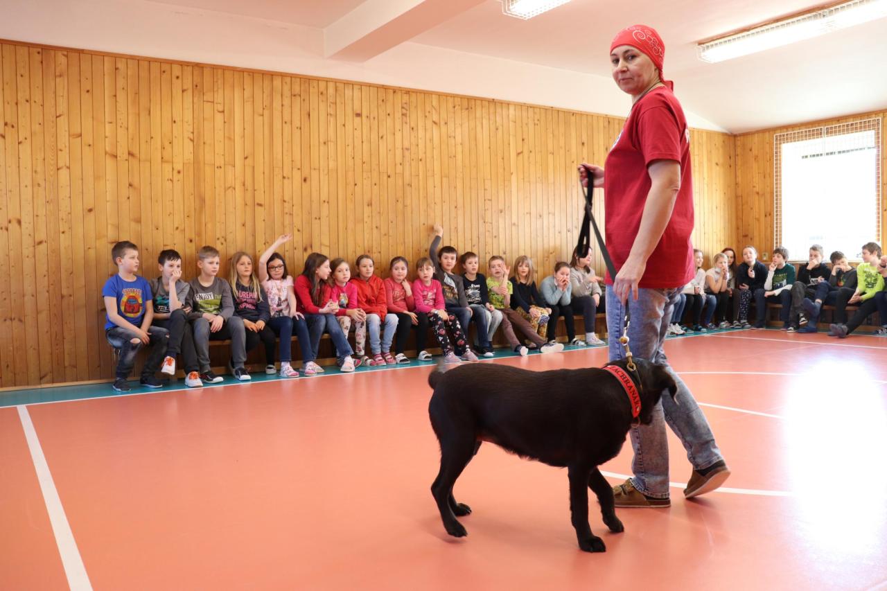 Ve čtvrtek 10. 3. 2022 nás navštívila paní Michaela Nová se záchranářskou fenkou Tessie. Nejdříve dětem předvedla základní psí povely a pak jsme všichni se zaujetím poslouchali, co všechno obsahuje práce záchranáře a záchranářského psa.