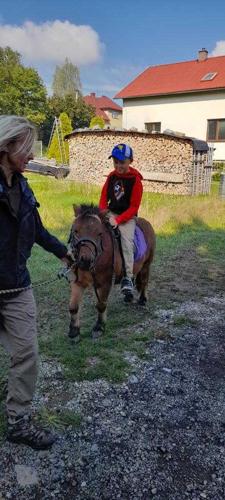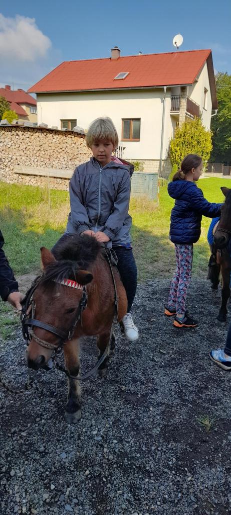 Ostatní děti se mohou podívat na zvířátko, které třeba ještě neviděly, pohladit si ho nebo se pomazlit. Tentokrát jsme měli možnost vidět i cvičené pejsky a jejich šikovné malé paničky. Jednoho pejska s hendikepem, což bylo pro některé děti překvapivé. Také jsme viděli rybku, kuřátko, králíčky, pakobylky, morče, křečky, kočičky, gekona a oblovky žravé. A představte si, že ze Seninky přišla maminka Peťka Holbová se dvěma poníky, kteří povozili všechny školní a školkové děti. Za její ochotu moc děkujeme. Byl to opět další krásný a pohodový den ve škole.