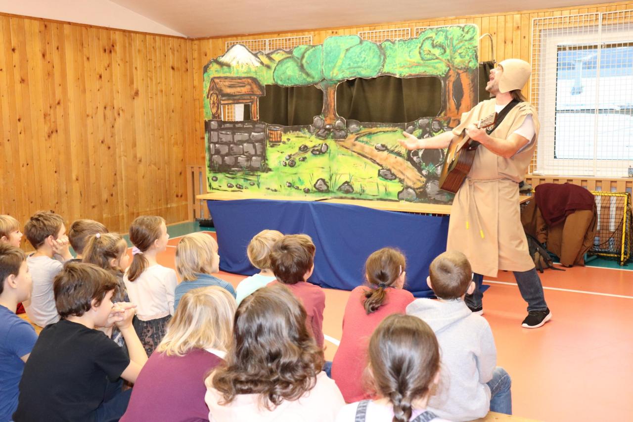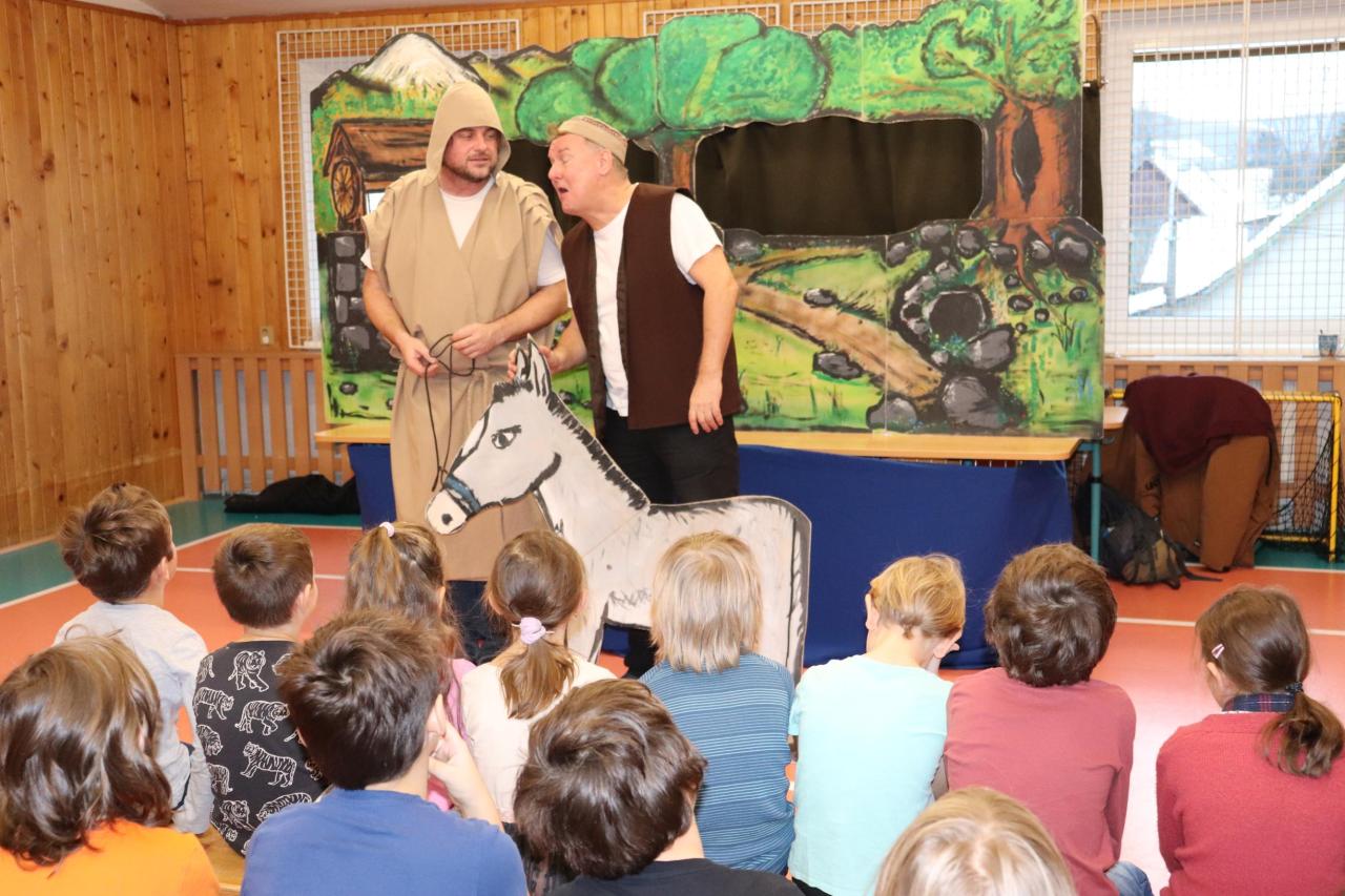 V úterý 12. 12. zavítalo do naší školy divadlo z Hradce Králové. Dva profesionální herci dětem zahráli čtyři bajky, při kterých se bavily nejen děti, ale i dospělí. S humorem a nadsázkou dětem připomněli, jak se my lidé někdy nepěkně a hloupě chováme. Děkujeme obci Seninka, která dětem toto vystoupení zaplatila.