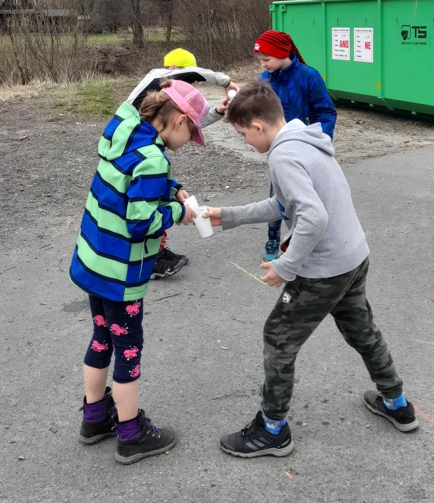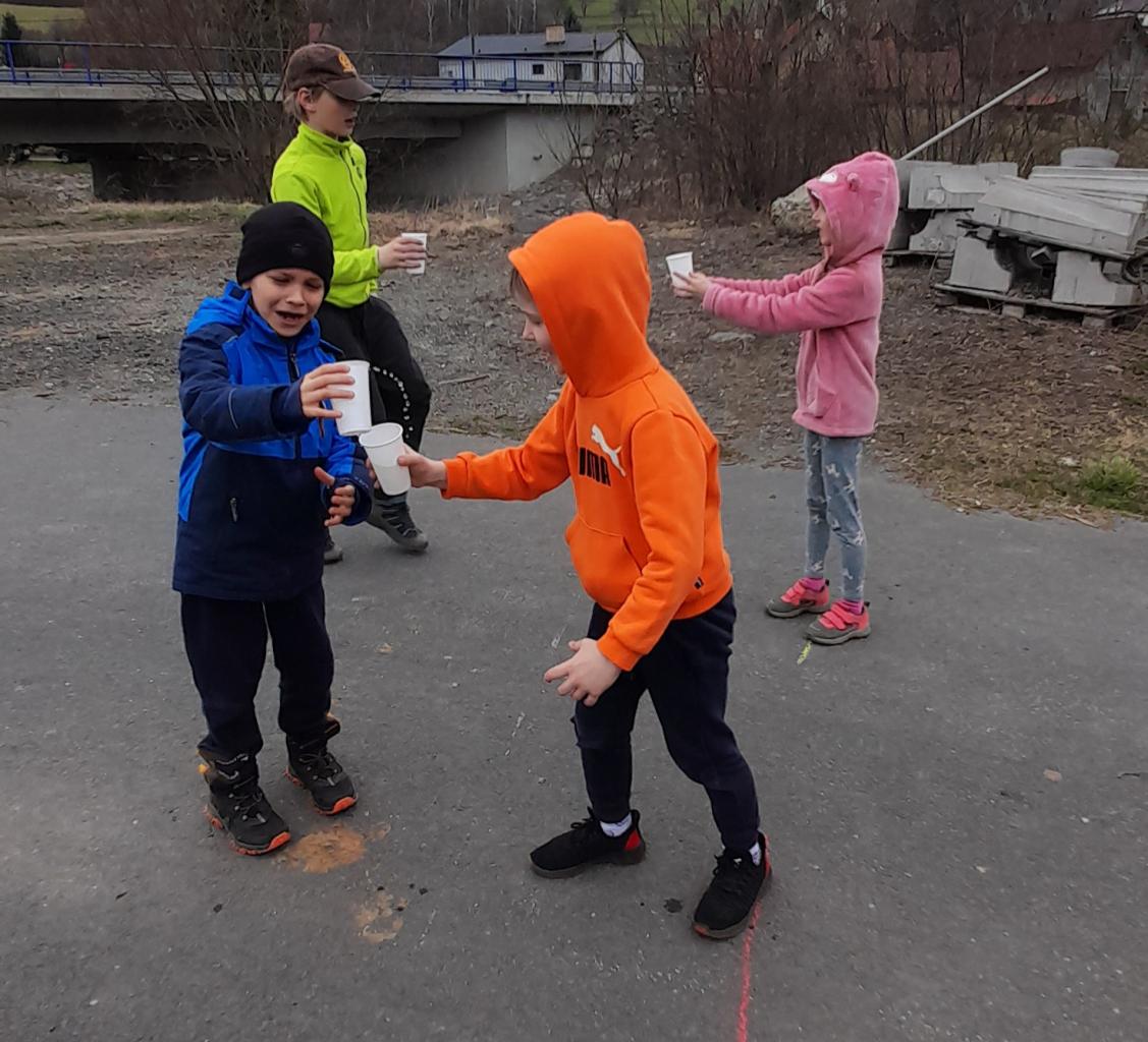 22.3. jsme oslavili Den vody - dělali jsme pokusy - zkoušeli, zda se obarví kytka, když ji dáme do barevné vody; vyráběli jsme si potápěče, hráli hru s přenášením vody; šli jsme zkontrolovat studánku - zda jsou už vidět čolci; cestou jsme fotili obrázky vody.
