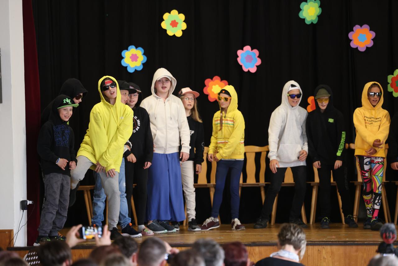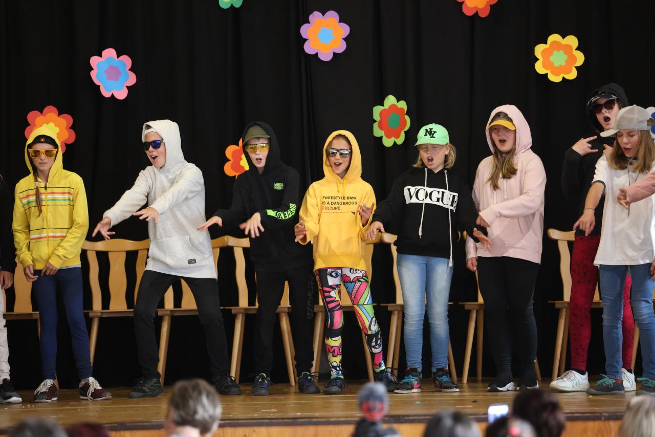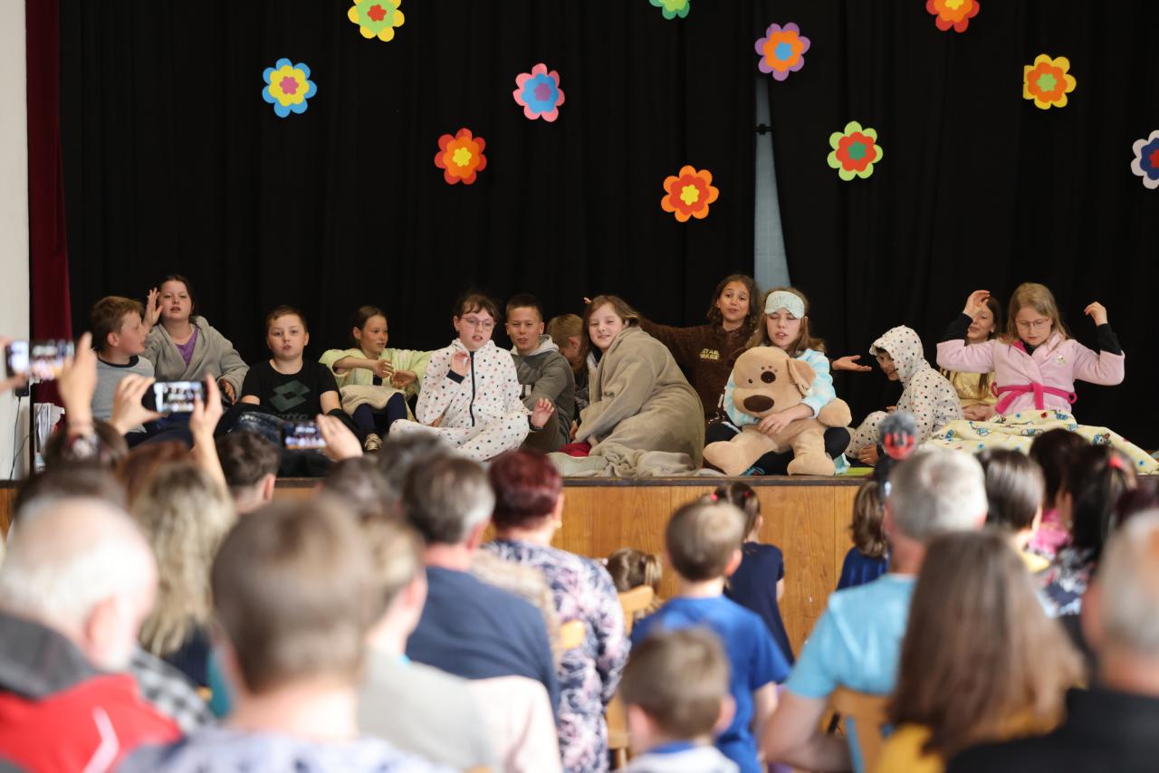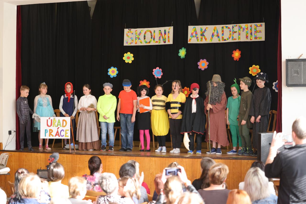 Školkáčci nás poučili, co dělat, abychom byli zdraví. Nejstarší žáci anglicky rapovali, 3. - 5. třída zatančila dum dum song, třeťáci nacvičili scénku úřad práce, žáci 1. a 2. třídy tancovali na hudbu z části Vltavy a povídali nám o Vltavě, módní přehlídku nám předvedli třeťáci s anglickým komentářem, páťáci a čtvrťáci nám předvedli, jak vypadá jejich školní den, děti ze školní družiny zatančily tanec s tácky na hudbu z Louskáčka a všichni školáci zazpívali na závěr píseň Buchet je spousta z pohádky Kouzla králů.