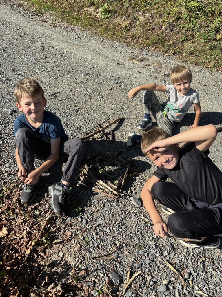 S našimi prvňáčky, druháčky a páťáky jsme si stihli užít poslední slunečný den naplno – výtvarná výchova na čerstvém vzduchu? To byla radost! A že jsme si ji užili!