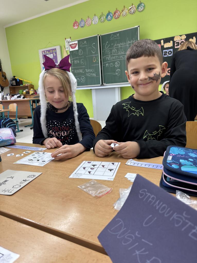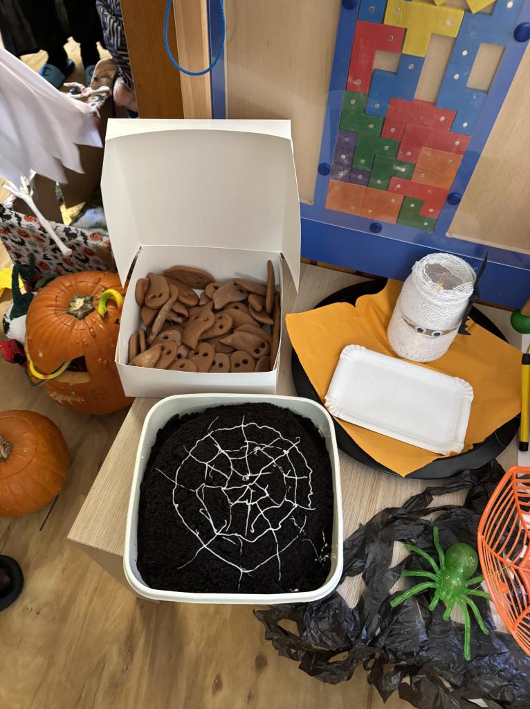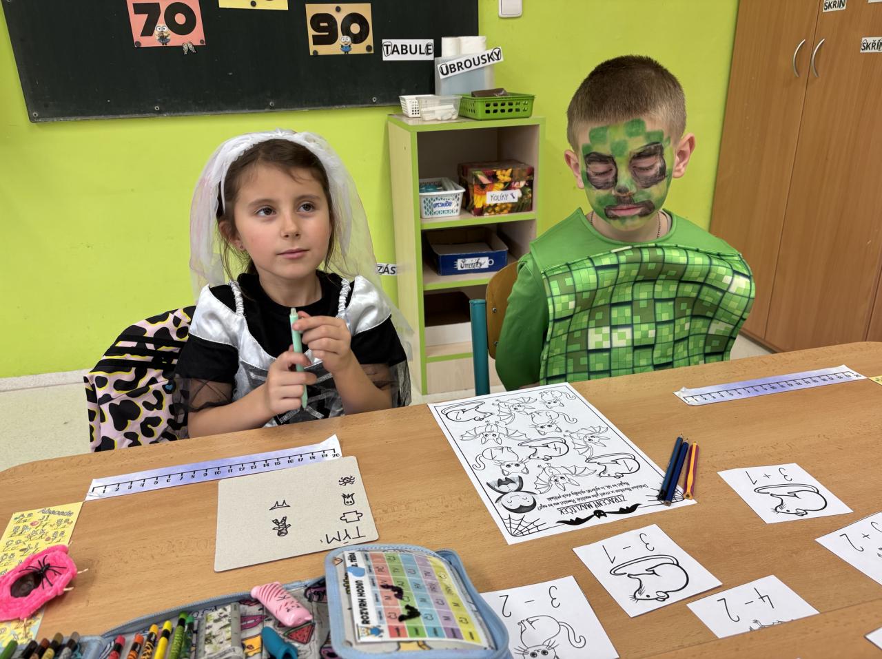 Chodby školy ožily halloweenskou výzdobou – dýně se šklebily z každého kouta, z květináčů na nás vykukovaly veliké oči a mezi sladkostmi se objevovali pavouci.