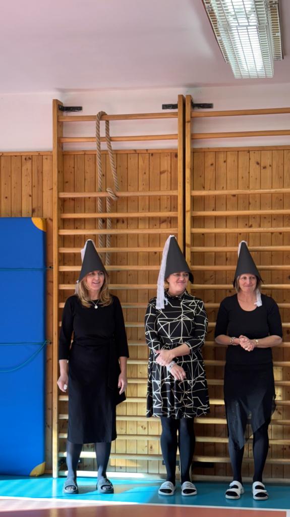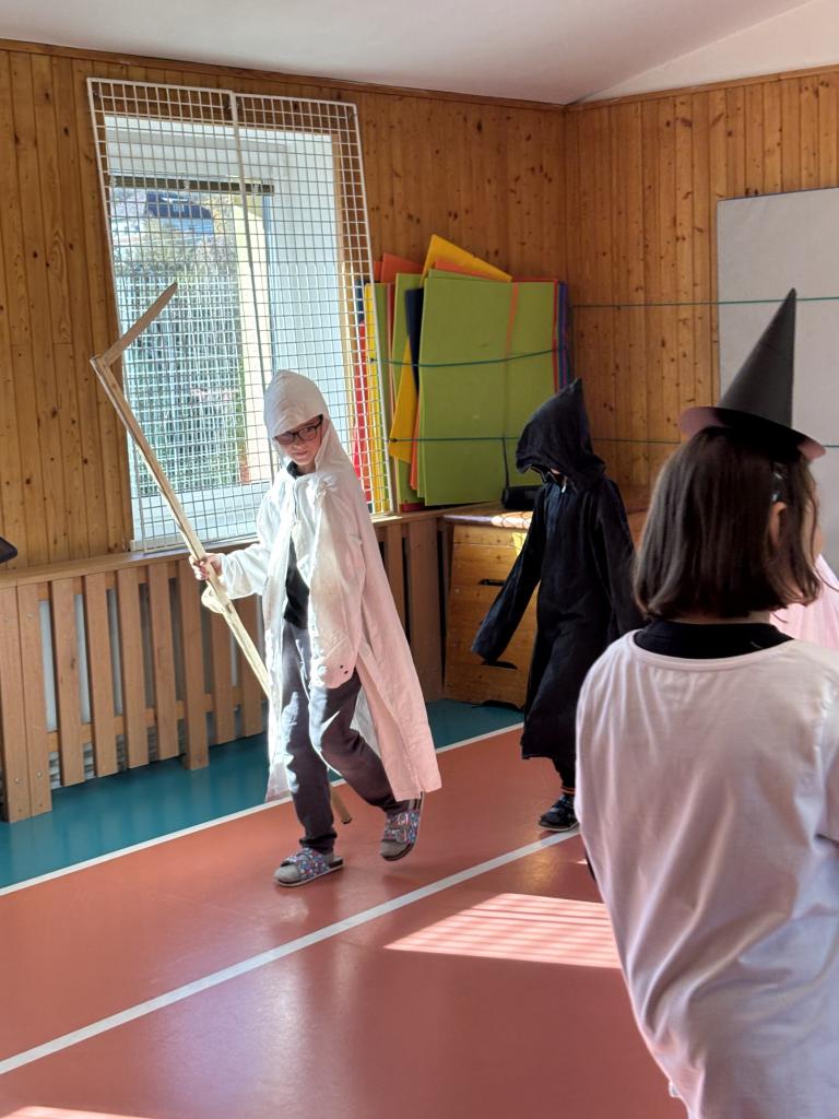 Po promenádě masek se děti rozdělily do menších skupinek, aby pomocí kouzelného lektvaru vysvobodily paní učitelky ze zakletí. Naštěstí se podařilo – všechny učitelky byly zachráněny!