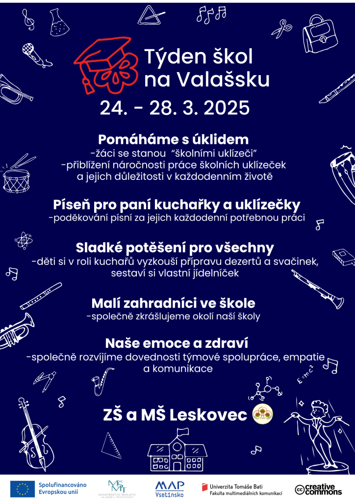 V rámci týdne škol na Valašsku naši žáci zakusí, jaké to je starat se o hladký chod celé školy - od kuchařek přes uklízeče až po školníky. Získají mnoho cenných zkušeností a navíc posílí "třídního ducha". Konkrétněji si vyzkoušejí tyto aktivity: