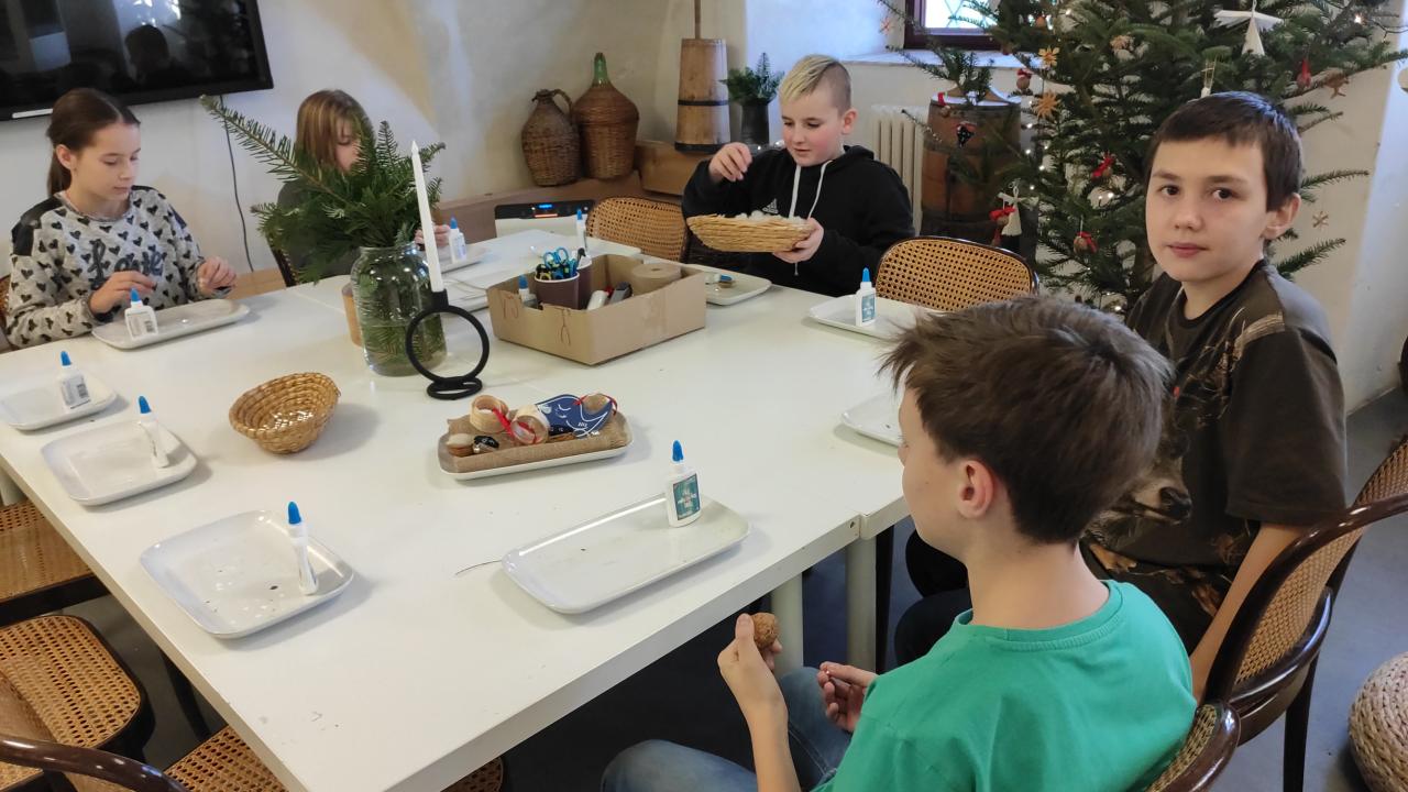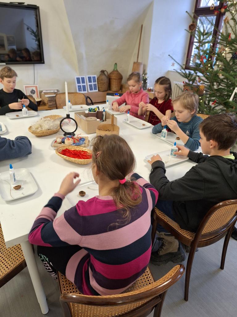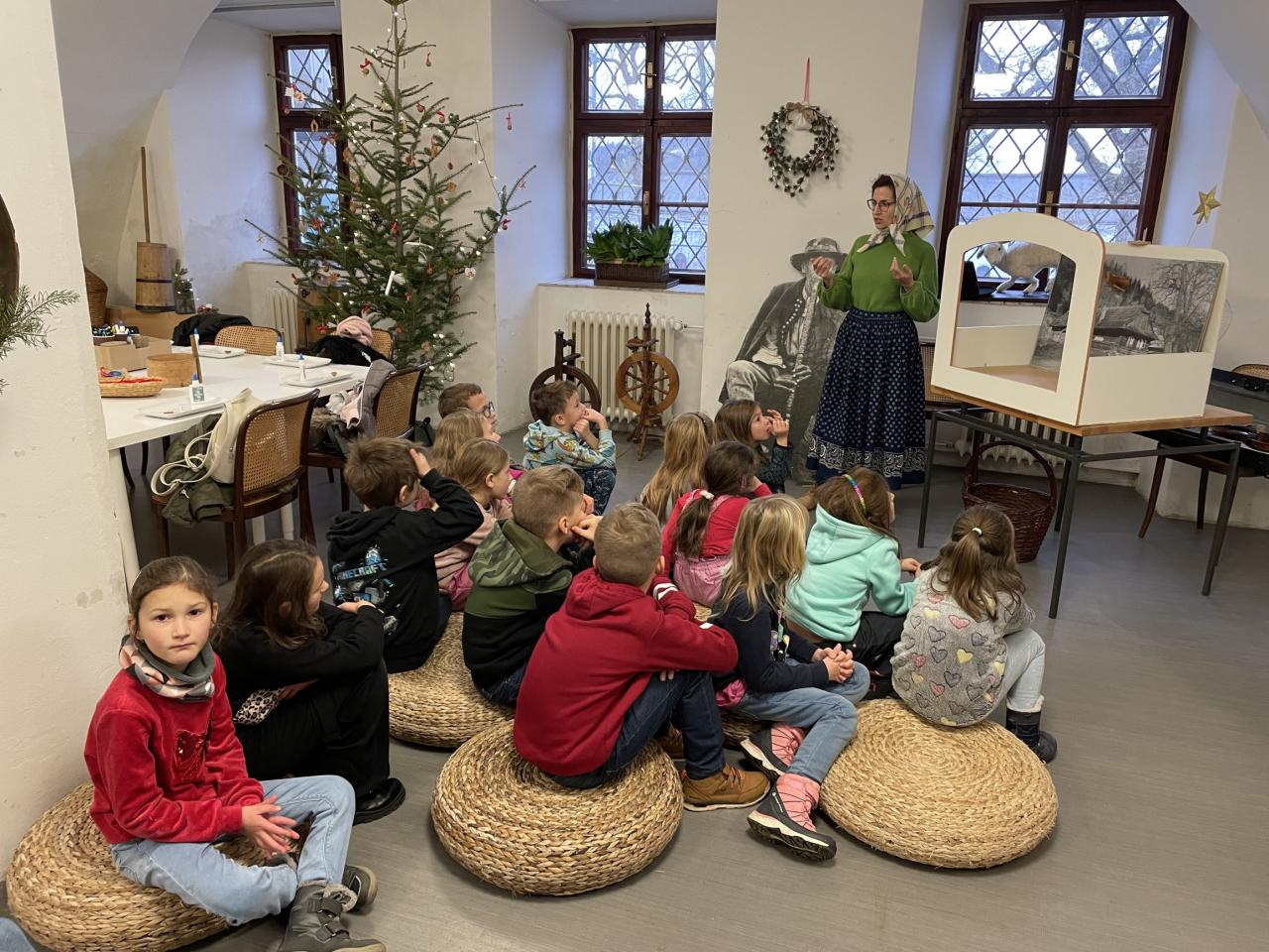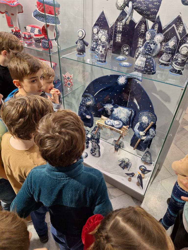 Program začal v prostorách výstavy, která pojednávala o výrobě modrotisku a k vidění také byly obrazy vyrobené touto technikou. Ve dvou místnostech děti měly najít 5 betlémů z různých materiálů. Paní lektorka předvedla mladším dětem krátké představení inspirované narozením Krista. Děti byly do hry aktivně vtaženy. Na konci programu si vyrobily jednoduchou ozdobu na stromeček ze skořápky ořechu a kousku vlny.