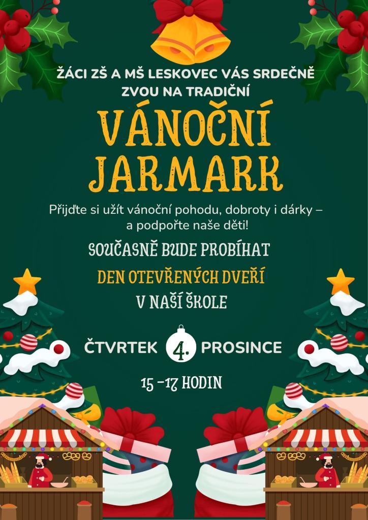 Zveme vás na Vánoční jarmark a Den otevřených dveří do naší školy 4. prosince 2025 od 15.00 do 17.00 hodin.